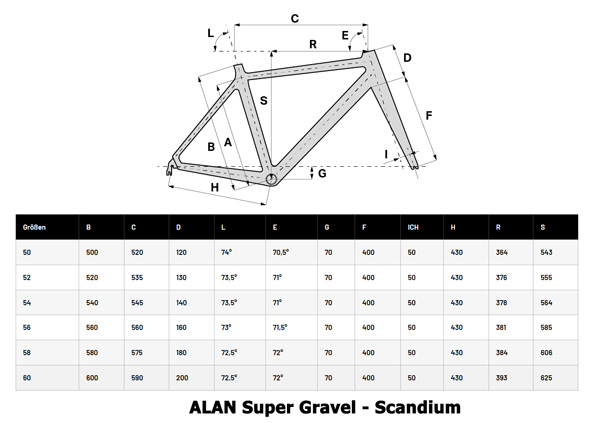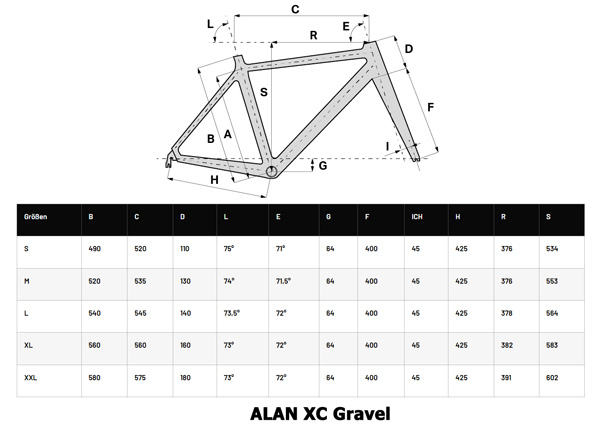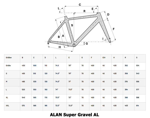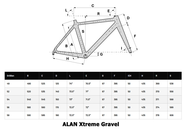 Geomtrie und Abmessungen der ALAN - Gravel Rahmen