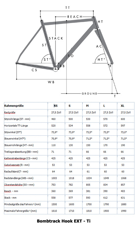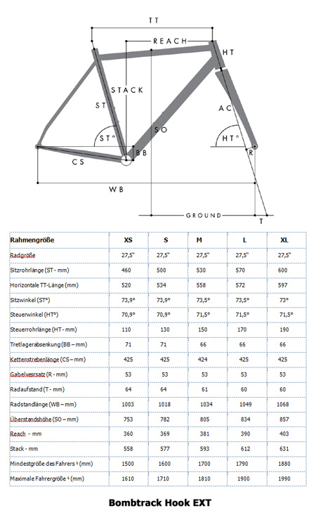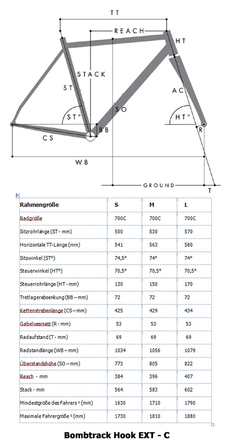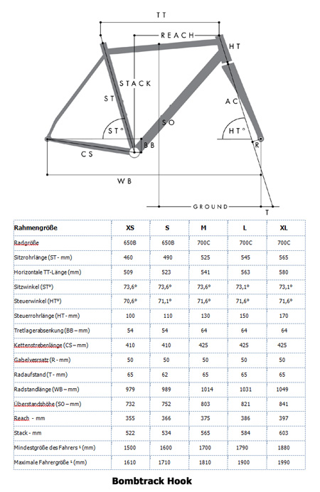 Geomtrie und Abmessungen BOMBTRACK - Gravel Rahmen